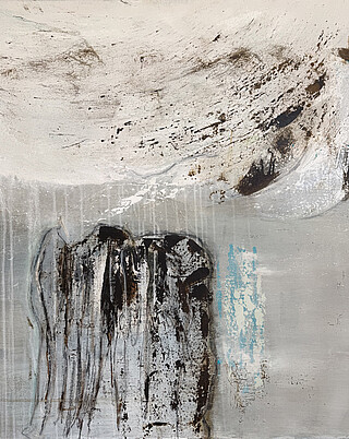 Seit Corona lebt sie als freischaffende Künstlerin. Durch die Asche bekommen ihre abstrakten Bilder eine haptische Oberfläche und eine sichtbare Tiefe. Es sind erdige Farbtöne von grau, silbrig bis rötlich. Mit Farbpigmenten setzt sie gelegentlich sparsame Farbkontraste dazu. Sie arbeitet in Serien. So heißt ein Titel „Ich sehe Stimmen“ aus der Reihe der Tonspuren-Bilder. Um dieses staubige Material auf die Leinwand zu bringen, hat sie eine spezielle Technik entwickelt. Sie mischt die Asche nicht in einem Gefäß, wie gewöhnlich, sondern trägt sie direkt auf eine befeuchtete Leinwand auf und malt mit einer Art Kuchenspachtel. Inzwischen hat Kunstinitiator Dietmar Galuschka ein großes Netzwerk aufgebaut. Aus München und über die Region Wolfratshausens hinaus melden sich Künstler, um im Wolfratshauser Amtsgericht ausstellen zu dürfen. Es ist eine kostenlose Möglichkeit für Künstler ihre Arbeiten öffentlich zu präsentieren und so aus ihrem eigenen Gau einmal herauszukommen