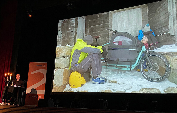 Wolfratshausen, 23.1.2023 – 3517 Kilometer per Muskelkraft durch sechs Länder in vier Monaten. Von Wismar in Norddeutschland bis nach Pamplona in Spanien auf einem Lastenfahrrad. Der Abenteurer André Schumacher präsentierte seinen multimedialen Reisevortrag „Wildes Europa“ im Rahmen des „Wild!“-Festivals in der Loisachhalle. Viele Besucher kamen zu den zahlreichen Vorträgen von Weltenbummlern und Extremsportlern, organisiert von der Stadt Wolfratshausen und dem bekannten Reisejournalisten Dirk Rohrbach.