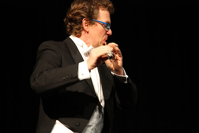 Weiter ging es durch die „Romantik in Europa“, so der Titel des dritten Konzertabschnitts mit Rossinis „Diebischer Elster, Doraks sanft emotionaler Musik „Aus der neuen Welt“, dem quicklebendigen „Ballett der Küken in ihren Eierschalen“ aus Mussorgskys „Bilder einer Ausstellung“ und Tschaikowskys Nussknacker-Suite durfte hier nicht fehlen. Und schließlich ging es über den großen Teich in die Moderne mit Debussy, Joplin und Gershwins „Rhapsody in Blue“. Für das hohe Können des Ensembles sowie für die Gesangeinlagen, unter anderem auch von Andreas Haas, erhielt das Freie Landesorchester Bayern großen Applaus und laute Bravo-Rufe vom Publikum.