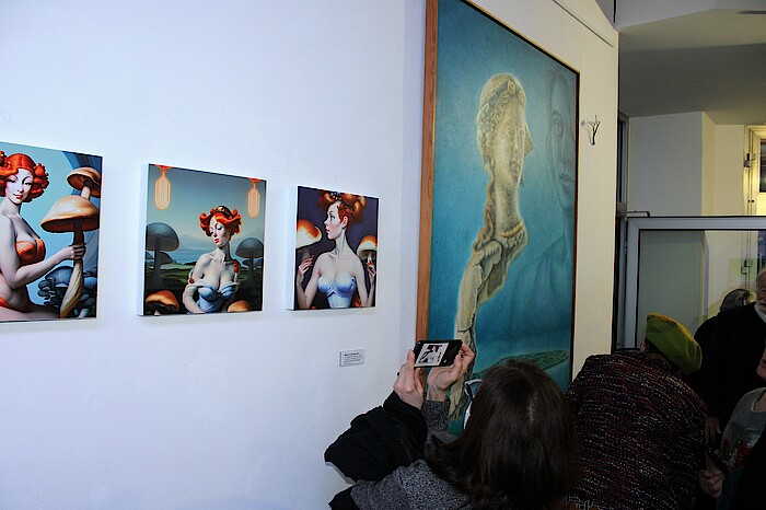 Während Bürgermeister Klaus Heilinglechner und die Vorsitzende des Vereins Bürger fürs Badehaus Waldram-Föhrenwald Dr. Sybille Krafft die ausgestellten Werke schon vor der Begrüßungsrede von Hans-Werner Kuhlmann bewundern konnten, warteten die Stadträte im nahegelegenen Rathaus ungeduldig auf das Sitzungsende des Kulturausschusses und eilten kurz darauf mit 20-minütiger Verspätung in das fast überfüllte Gebäude. Kuhlmann dankte zunächst Hamit Cordan, der einst selbst seinen Abschluss bei Jürgen Reipka erwarb und viele seiner ehemaligen Kommilitonen nach Wolfratshausen lockte. Cordans Anekdoten über gemeinsame Erlebnisse mit dem exzentrischen Professor erheiterten die Vernissage-Gäste. Die strenge Überprüfung von Leistungsnachweisen stand dabei nicht immer im Vordergrund. Vielmehr zog Reipka mit seinen Studenten auch gerne durch Weinlokale und lernte seine Schüler dadurch noch besser kennen.
