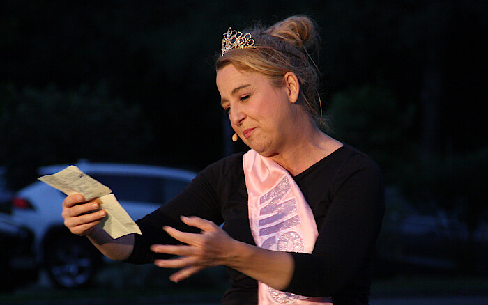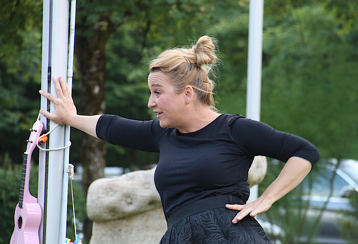 Lindner überzeugte durch ihre Wandlungsfähigkeit von der schlagfertigen Person ihrer selbst zur kauzigen Oma im Strickjäckchen und der komplett abgefahrenen, zahnlosen, nickelbebrillten Cordula. Inhalt: Die Liebe und die Suche nach dem richtigen Mann. „Ich bin sehr körperlich“, sagte Lindner und erschien mit Krönchen am Kopf und Miss-Wolfratshausen-Scherpe. „Miss Verständnis“ heißt ihr Soloprogramm und machte unmissverständlich den Zuschauern in den voll besetzten Reihen klar: Das wird ein lustiger Kabarettspaß am heißen Sommerabend in launiger Open-Air-Atmosphäre zwischen Golfplatzgrün und Abendstimmung. Aber dann gab es kein Entrinnen mehr. Constanze Lindner schaffte nicht nur eine Pointen-Jagd nach der anderen, sondern zog auch das Publikum mit ein. Den Franz („Du hast mein Herz erobert.“), den Hausmeister in der ersten Reihe, den sie anstelle des Bürgermeisters zum Ehrengast ernannte. „Der tut's auch.“