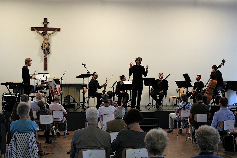 Der Auftrittsort in der Aula der St.-Matthias-Schule war bewusst gewählt. Denn am heutigen Seminarplatz stand einst eine Synagoge, die von jüdischen Holocaust-Überlebenden im einstigen DP-Lager Föhrenwald besucht wurde. Krafft dankte der Initiative „Kulturerbe Bayern“ für die erstmalige Kooperation mit dem Badehaus-Verein und bedauerte, dass aufgrund der immer noch bestehenden Corona-Hygienevorgaben nur 111 Karten verkauft werden durften. Denn die Nachfrage für das Konzert des weltweit anerkannten Kammermusik-Ensembles überstieg das Kontingent bei weitem.