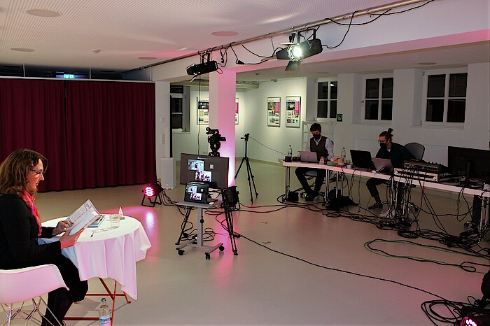 „Wir hätten die Vernissage gerne mit vielen Besuchern gefeiert“, bedauerte Badehaus-Vereinsvorsitzende Dr. Sybille Krafft. Dies war aus gegebenem Anlass ebenso wenig möglich wie die Anreise der in Berlin lebenden Kuratorinnen. Deshalb ermöglichten die Badehaus-Mitglieder Andre Mitschke, Jonathan und Joseph Coenen eine Online-Veranstaltung, die nach wie vor unter erinnerungsort-badehaus.de abrufbar ist.