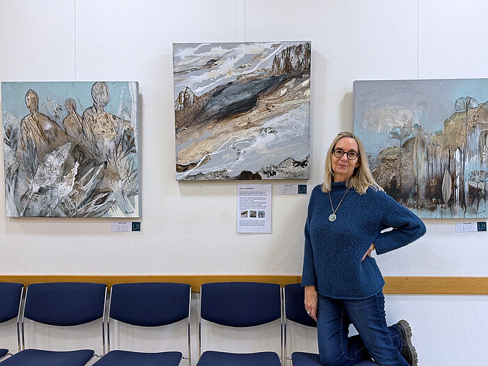 Wolfratshausen, 13.1.2026 – Für die Achmühler Künstlerin Linda Jatho-Hölzl ist die Malerei „die absolute Freiheit“. Sie sagt, sie male nicht, „wie etwas aussieht, sondern wie es sich anfühlt“. Dabei spielt die Musik eine wichtige Rolle. Die freischaffende Künstlerin zeigt noch bis Ende Februar ihre farbstarken Abstraktionen im Obergeschoss des Wolfratshauser Amtsgerichts.