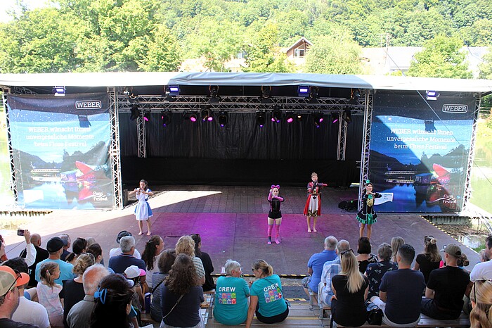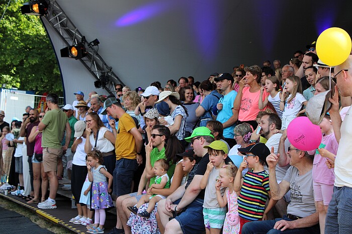 Temperaturen um die 30 Grad-Marke führten dazu, dass der Andrang in den Nachmittagsstunden etwas nachließ. Die Hitze stellte auch für die Hundesportfreunde Königsdorf eine Herausforderung dar. „Für die Tiere ist das schon eine Belastung“, räumte Vorstandsmitglied Angelika Kassner ein. Die Dogdance-Quadrille dauerte deshalb nur eine halbe Stunde. Gar mit Bauhelmen lud die Jugend der Stadtkapelle zum „Sitzkissenmitmachkonzert“ ein. Nach Zaubershows, Akrobatikeinlagen der Zirkusgruppe von Solomon Solgit und einer Vorführung des Tanzzentrums Müller standen am Abend die Musikbeiträge junger Künstler im Vordergrund. Die mitorganisierende Stadt gewährte der letzten Band Cindysiza sogar eine 44-minütige Nachspielzeit, sodass die letzten Gäste erst gegen 21 Uhr zum Heimgehen überredet werden mussten. „Wichtig war, dass heute jeder Einzelne zum Erfolg des Familien-Festivals beigetragen hat und wir viele glückliche Gesichter gesehen haben“, bilanzierte DLRG-Ortsvorsitzender Robert Klingel.