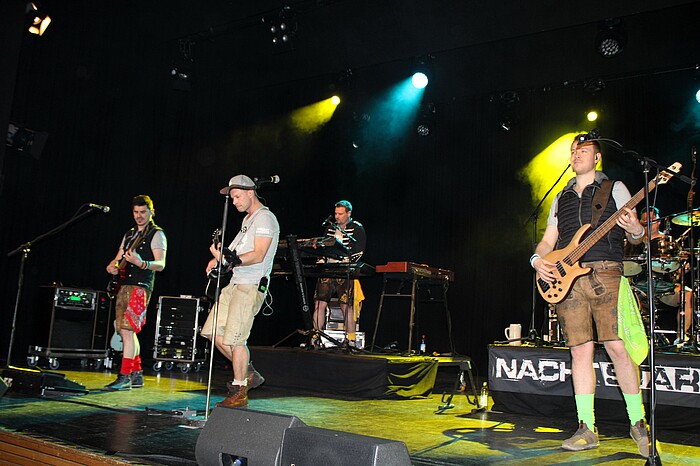 Zwischendurch sang ein Bahnhofschor (Carolin Wolf, Theresa Mockenhaupt, Stefan Schwellenbach und Patrick Laier) umgetextete Schlager- und Popsongs. So wurde Udo Lindenbergs „Sonderzug nach Pankow“ mit der Frage „Entschuldigen Sie, ist das hier wirklich Wolfratshausen?“ eröffnet. Auch der „Zug nach nirgendwo“ und die S-Bahn werde in absehbarer Zeit sicher nicht von Wolfratshausen nach Geretsried fahren. Lustige Auftritte der Stadtratsdoppelgänger Jennifer Layton (Verena Hrotko), Ingrid Schnaller (Melissa Demmel), Helmut Forster (Michael Hanak) und Patrick Lechner (Tobias Zengerle) rundeten das kurzweilige Vergnügen ab. Nach dem von Monika Schwenger inszenierten Singspiel präsentierte die Band Nachtstark noch bis kurz nach Mitternacht jede Menge Stimmungshits.
