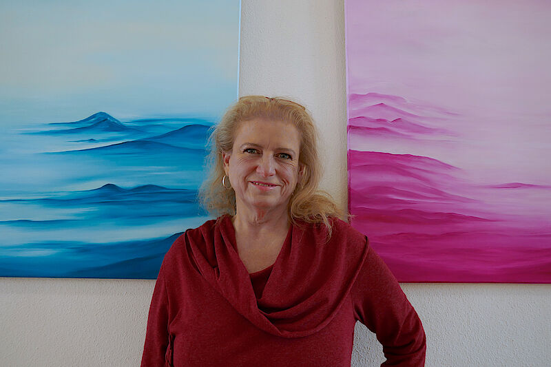 Sabine Oßwald malt seit 38 Jahren. Die gelernte Chemietechnikerin sieht die Arbeit mit Pinsel und Farbe als „Abtauchen aus Alltagssituationen“. In einer sehr turbulenten Zeit habe sie gespürt, wie ihre Seele nach Ruhe ruft.“ Die Malerei habe ihr dabei geholfen. In dieser unruhigen Zeit sei dann auch die neue Serie „Silence – die unendliche Weite der Stille“ entstanden, sagt die 52-jährige Künstlerin aus Benediktbeuern. Sabine Oßwald hat 2017 und 2019 an der Wolfratshauser Kunstmeile mitgewirkt und bereits neun Mal bei den Heimischen Künstlern in der Loisachhalle ausgestellt.