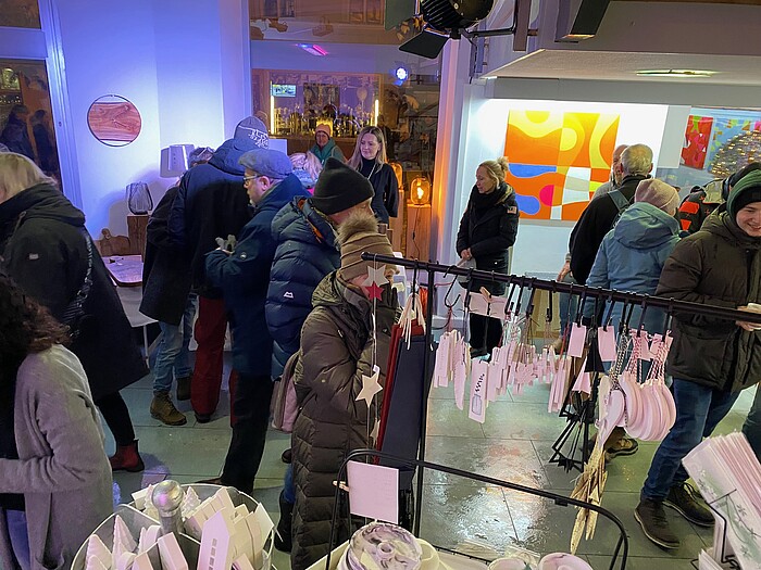 Wolfratshausen, 4.12.2023 - Am 1.Dezember eröffnete zeitgleich mit dem Christkindlmarkt in der Wolfratshauser Altstadt der erste Adventsmarkt „Einfach himmlisch“ im Kunstturm am Schwankl-Eck. Trotz schwieriger Straßenverhältnisse und eingeschränkter Anfahrtsmöglichkeiten fanden am Freitagabend viele Besucher den Weg in das denkmalgeschützte Gebäude und bewunderten auf drei Etagen die Werke der Aussteller.