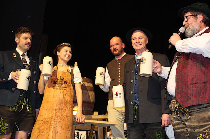 Wolfratshausen, 13.3.2018 – Auf dem Starkbierfest in der Loisachhalle war in diesem Jahr einiges anders: Statt Bürgermeister Klaus Heilinglechner zapfte Bierkönigin Lena Hochstraßer das erste Fass an. Das von vielen vermisste Singspiel der Loisachtaler Bauernbühne erlebte nach einjähriger Pause eine Wiederauferstehung. Zum krönenden Abschluss sorgte erstmals „The Heimatdamisch“ für Partystimmung.