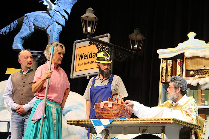 Dort tummelten sich neben dem Portner (Ludwig Gollwitzer) auch ein Orakel (Christine Dillinger), ein Dienstmann (Walter Niebler), der im Mephisto-Kostüm gekleidete CSU-Stadtrat Günther Eibl (Tom Janoschi), die Vorsitzende des Werbekreises Wolfratshausen Ingrid Schnaller (Christine Brauner), der in verschmutzter Tunnelgräber-Kluft auftretende Kulturreferent Alfred Fraas (Franz Foitzik), Jugendreferentin Kathi Kugler, Stadtrat Dr. Hans Schmidt und der Running Gag (Melissa Demmel). Die Nachbarstadt „Krämmelsried“ vertraten der Geretsrieder Bürgermeister Michael Müller (Christian Foitzik), seine beiden Stellvertreter Hans Hopfner (Max Prestel) und Gerhard Meinl (Florian Roth) sowie Rosa Bunker (Monika Schwenger). Ein Auftritt des ehemaligen bayerischen Ministerpräsidenten Edmund Stoiber (Hermann Paetzmann) beendete das traumhafte Singspiel.