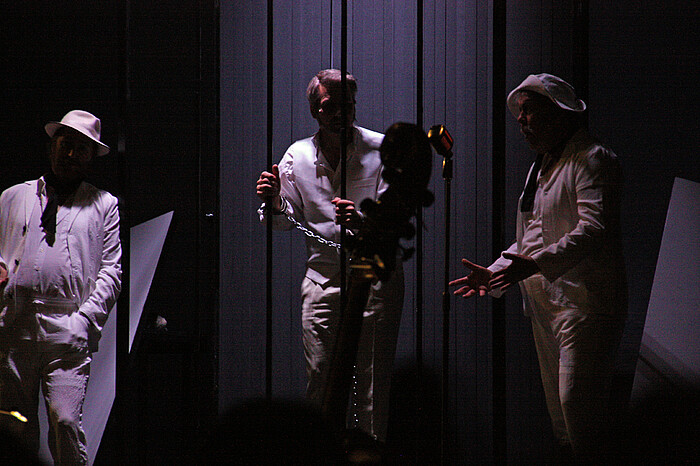 In der Loisachhalle waren nur noch wenige Plätze freigeblieben. Die Darsteller des Freien Landestheater Bayerns haben eine Glanzleistung hingelegt, gleichfalls die Musiker des dazugehörigen Orchesters. Das dreistunden lange Theaterstück war kurzweilig, spannend und ausdrucksstark inszeniert, sowohl von der schauspielerischen Leistung, des stimmgewaltigen Gesangs, der zurückgenommenen musikalischen Untermalung und der Bühnendarstellung, die nur durch weiße bewegliche Stoffwände die Kulisse je nach Szene modellierte.