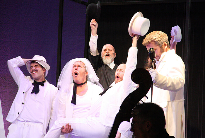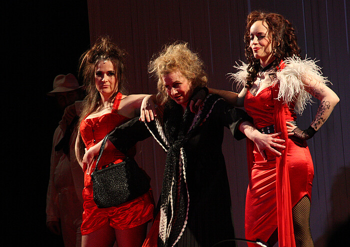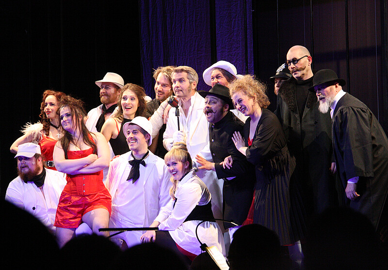 Soviel zur Aufführung in der Loisachhalle. Zum Stück selbst: Es sollte eine „Antioper“ für einfache Leute werden, aufgeführt in einfachen Verhältnissen und erschwinglich für jedermann, so wird der ursprüngliche Hintergrund im Programmheft beschrieben. Die „Dreigroschenoper“, auch als Bettleroper bezeichnet, wurde 1928 in Berlin uraufgeführt, in 18 Sprachen übersetzt und erreichte Weltruhm. Heuchelei, Macht und Doppelmoral sind die Kernthemen im Stück. Die Korruption zwischen der Unterwelt und Obrigkeit wird beeindruckend dargestellt. So steht ein Zitat aus dem Stück bezeichnend dafür: „Was ist der Unterschied zwischen einem Bankraub und der Gründung einer Bank?“. Auch in den Liedern wird das Milieu wunderbar transportiert. Von der „Zuhälterballade“ bis zur „Ballade des angenehmen Lebens“, vom „Eifersuchtsduett“ bis zum „Lied der sexuellen Hörigkeit“. Und nicht zuletzt weltberühmt wurde „Die Moritat von Mackie Messer“.