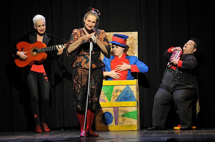 Es war schon von Anfang an eine kuriose Truppe, die sich da dem Publikum präsentierte. Sie tanzten, musizierten und scherzten, und jeder dieser komischen Vögel hat seine eigenen Talente, um die Leute zum Staunen, zum Lachen und zum Träumen zu bringen: So gelang ein Zauber, der weniger artistischen Höchstleistungen zu Grunde lag, denn den feinen, wohldosierten Gesten, einer treffsicheren Mimik und einem hochpräzisen Sinn für Momente und dem Balanceakt zwischen Komik und Tragikkomik. Die Töchter von Clown Dimitri, Masha und Nina, sowie dessen Enkel Samuel bilden zusammen die „Famiglia Dimitri“ und werden bei „Dimitrigenerations“ unterstützt von Clownin Silvana Gargiulo. Sie bildet alleine mit ihrer Physiognomie einen Kontrapunkt zu den drei hageren und hochgewachsenen Familienmitgliedern und bereichert die einzelnen Szenen und Tableaus. Zum Beispiel so: Ein bisschen resolut, zumindest aber willens, am Klavier ihr Können zu zeigen, so gab sie sich in einer Szene. Allerdings hatte das Musikinstrument anderes im Sinn. Jedes mal, wenn sie auf dem Klavierhocker Platz nahm, energisch die Rockschöße hochwarf und in die Tasten greifen wollte, zog sich das Klavier zurück. Ein Katz- und Maus-Spiel zwischen der Pianistin und Instrument begann - mit furiosem Finale.