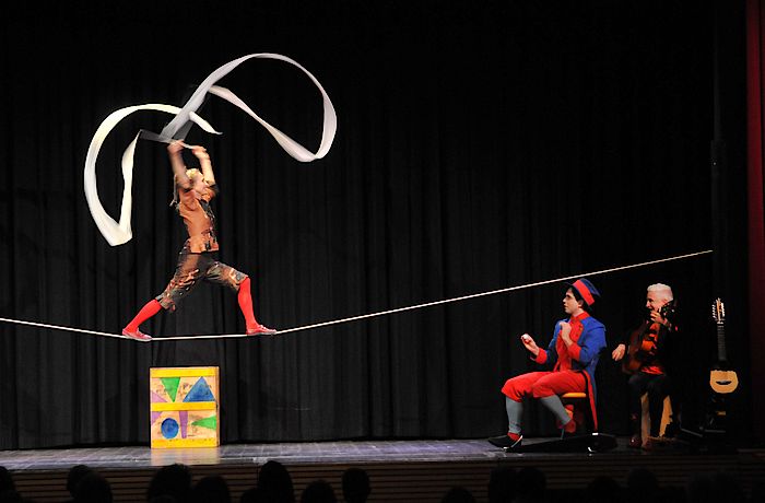 Wolfratshausen, 20.11.2018 – Es war ein Abend wie ein Geschenk: Mit dem neuen Programm „Dimitrigenerations“ setzte die „Famiglia Dimitri“, eine vierköpfigen Zirkus- und Varieté-Gruppe mit Nachfahren des berühmten Clowns Dimitri, kürzlich in der Wolfratshauser Loisachhalle auf verspielte Poesie und Phantasie, um das Publikum völlig in den Bann zu ziehen.