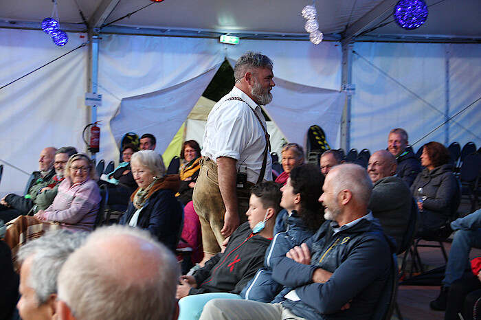 Lustig und unterhaltsam waren die beiden Typen in Lederhosen allemal und durchaus mit ihrem Komikprogramm einzigartig und kontrovers am diesjährigen Flussfestival. Völlig themenfrei und unpolitisch und ohne roten Faden durchs Programm – die beiden greifen einfach immer wieder in die Trickkiste, singen ein Gstanzl dazu und weiter geht’s mit dem nächsten Gag. Der gebürtige Garmischer Luggi (Daniel Ludwig Neuner, Humorist, TV-Schauspieler und Musiker) ist so ein, wie man sagt, gestandenes Mannsbild mit Bierbauch und Vollbart. Sein Bühnenpartner Guggi (Thomas Gugger, Profi-Schlagzeuger) ein schmächtiges Bürschchen, der vermeintliche „Bühnenassistent aus dem Ural“. Der Luggi hat das sagen, der Guggi schweigt.