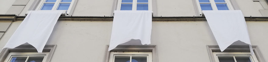 Wolfratshausen/Geretsried, 2.5.2020 – Weiße Fahnen wehten am 30. April aus Rathausfenstern, auf Kirchtürmen und von Balkonen. Zudem folgten viele Bürger dem Aufruf des Kulturvereins Isar-Loisach (KIL), des Historischen Vereins Wolfratshausen und der Bürger fürs Badehaus Waldram-Föhrenwald, mit einem sichtbaren Signal an das Ende des Zweiten Welkriegs zu erinnern. Das Gedenken an den Tag der Befreiung endete am Abend mit einem Livestream-Rock-Konzert der Bonny Tones in der Geltinger Kulturbühne Hinterhalt.