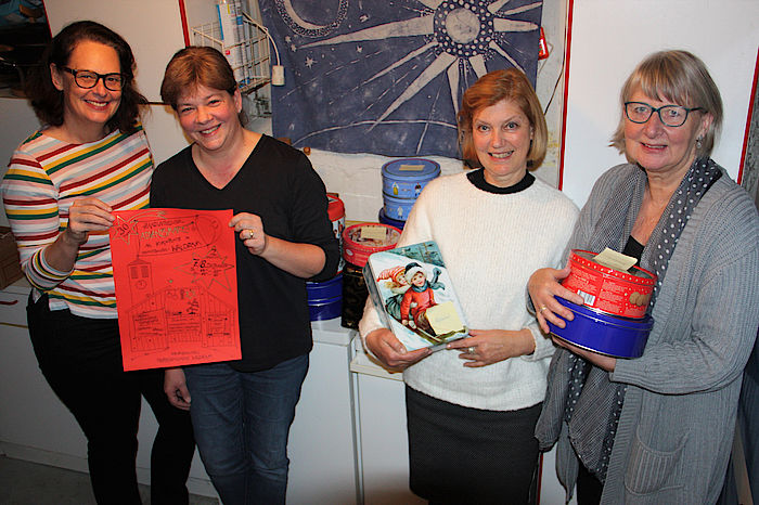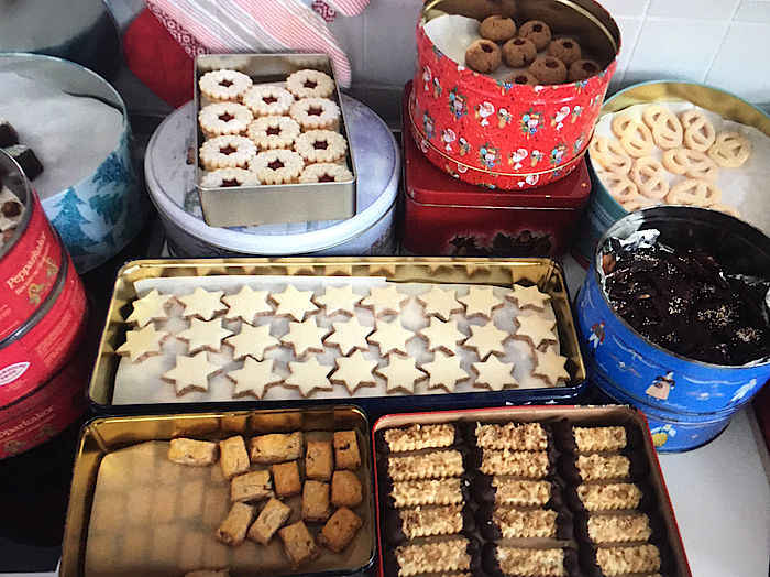 Will man erfahren, wie die Vorbereitungen laufen, dann trifft man die Platzerlexpertinnen Andrea Poloczek, Martina Steuer, Birgit Jordan am besten auf ihrer „Platzerl-Konferenz“. Dieses Mal ist Astrid Leinhas-Grosch mit dabei, die das süße Gebäck lieber genießt, dafür sich um die Marktorganisation kümmert. Seit vier Wochen sind die Damen im permanenten Backmodus. 60 Sorten á 150 Stück werden in feiner Handarbeit zubereitet. Wenn das süße Weihnachtsgebäck fertig ist, stehen acht Meter Platzerldosen aufgereiht nebeneinander. „Wir haben unsere Stammkunden, darunter viele ältere Waldramer, die vorbestellen und dann mit leeren Dosen zu uns in den Platzerlhimmel kommen“, sagt Andrea Poloczek.