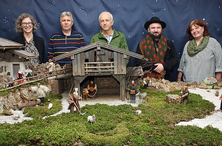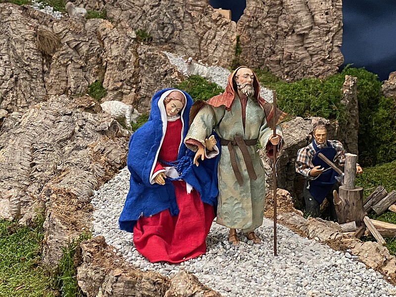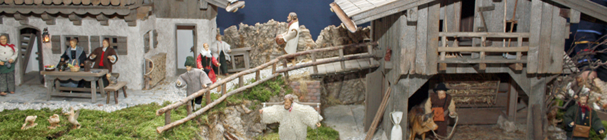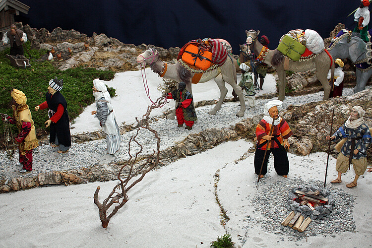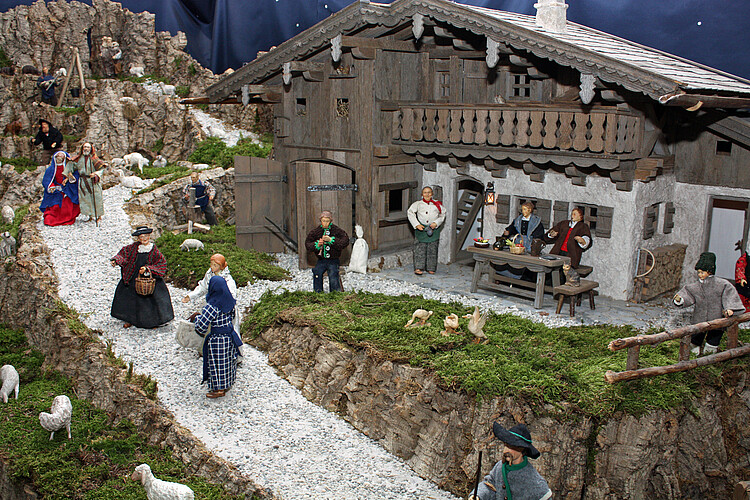 Die Krippe wird bis Heilig Drei Könige drei Mal umgebaut. Noch sieht man Maria und Josef auf dem Weg von Nazareth nach Betlehem auf einem Forstweg durch die Berge wandern. Erst an Weihnachten wird das Jesuskindlein in der Krippe gebettet sein, und am sechsten Januar besuchen Caspar, Melchior und Balthasar die frischgebackenen Eltern im Stall.