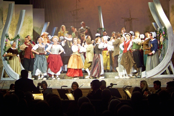 Wolfratshausen, 29.3.2014 - Am Freitagabend konnten die Oberländer den fulminanten Auftritt des Freien Landestheaters Bayern in der Loisachhalle in Wolfratshausen genießen. Stimmgewaltige Sänger, ein kongeniales Orchester mit Chor und Solistenensemble, ein originelles Bühnenbild, authentische Kostüme, eine raffinierte Geschichte und ein begeistertes Publikum sind das Resultat einer lohnenden Veranstaltung, die mit zweieinhalb Stunden Spielzeit den Abend füllte.