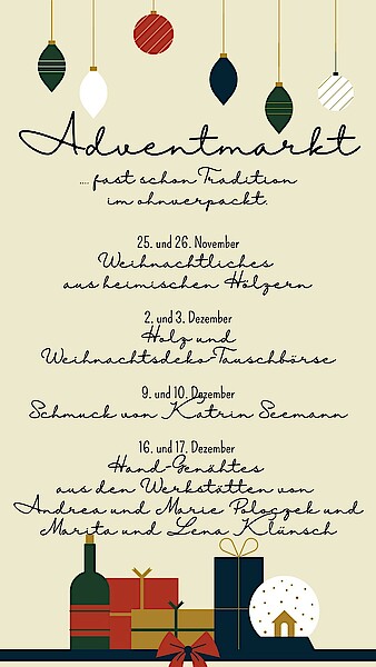Neu ist heuer die nachhaltige Weihnachtsdeko-Tauschbörse. Viele haben Weihnachtsdeko zuhause, die sich über die Jahre angesammelt hat und keine Verwendung mehr findet. "Wir nehmen gerne gut erhaltene Deko-Schätze an, die ab sofort bis zum Nikolaustag am 1. Dezember bei uns zu den Öffnungszeiten abgegeben werden können", erklärt Ladeninhaberin Martina Steuer. Am 2. und 3. Dezember findet dann die Tauschbörse im Ohnverpacktladen statt. "Jeder kann mittauschen oder einfach mit nach Hause nehmen, was er gebrauchen kann."