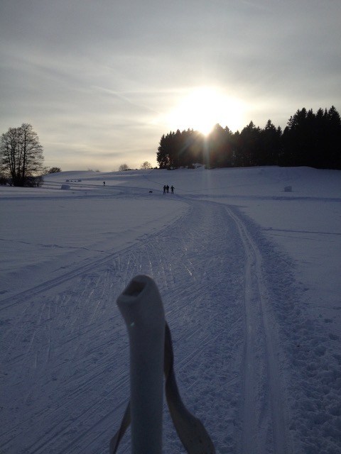 Diesen Abschnitt haben wortgewitzte Langläufer übrigens „Champs-Élysées" genannt. Die Loipe folgt der schönen Allee nämlich eine Weile und bei gutem Wetter ist diese Straße ein vielbesuchter Spazierweg, auch von gediegenen Herrschaften. Und dass sich echte Damen auch für einen Spaziergang passend parfümieren, versteht sich von selbst. So läuft der geneigte Wintersportler schon mal von Wölkchen zu Wölkchen, von Cartier zu Chanel. Naturfreaks, die angesichts solch' olfaktorischer Verhältnisse das Fluchen anfangen, bleibt bisweilen ein gutes Stück später die Luft weg: Erstens geht’s bald bergauf und zweitens dampft bisweilen in der Frühjahrssonne schon mal ein verschneiter Rossmisthaufen am Waldrand.