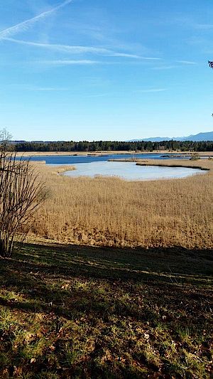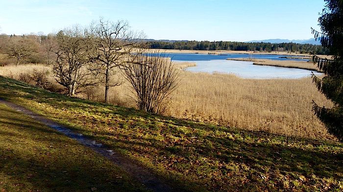 Das Gartensee und der kleine weiter östlich zu erkennende Ursee gehören schon zu den Osterseen. Seit 1981 besteht das gleichnamige Naturschutzgebiet mit einer Fläche von rund 1000 Hektar. Ein Drittel machen die Oberflächen der Seen aus. Knapp 500 Hektar bestehen aus Hoch-, Nieder-und Zwischenmooren. Etwa 170 Hektar Mischwald kommen hinzu. Der Würmtal-Gletscher hat die idyllische Landschaft in der jüngsten Eiszeit geformt. Sie endete vor rund 10000 Jahren.