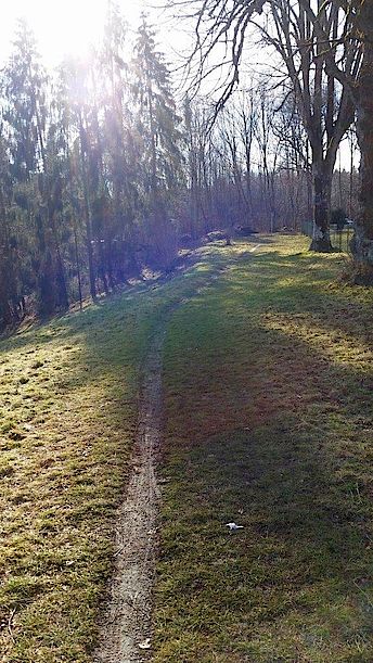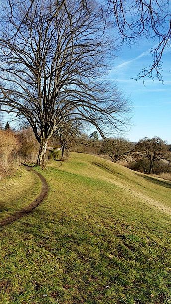 Die Wanderung folgt zu Beginn der Dall’Armi Straße Richtung Osten. Bald mündet diese in die Baumschulenstraße ein. Ihr folgt der Wanderer nach rechts Richtung Süden, bis der Höhenweg wieder nach Westen abzweigt. Nach kurzer Zeit biegt die Asphaltstraße in einen schmaleren gekiesten Weg zwischen Feldern und Wiesen ein. Schließlich geht es unter Laubbäumen zu einem erhöhten Aussichtspunkt. Hier laden Bänke und Tische zu einer ersten Rast ein. Der Blick geht über den von einem breiten Schilfgürtel umgebenen Gartensee bis zu den ersten Vorbergen der Alpen.