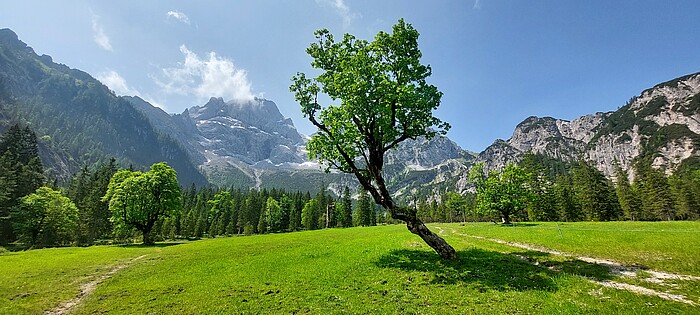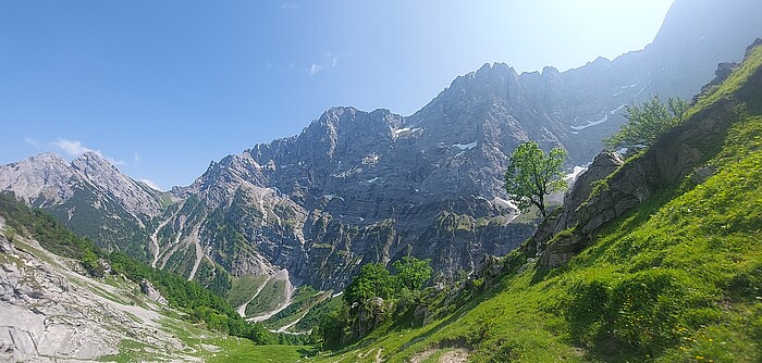 Testfazit: Die Wanderrunde durch das Rohntal, über die Torscharte und Tortal oder in umgekehrter Richtung bietet alle Charakteristika des Karwendel, ohne jemals gefährlich zu werden. Die Tour führt durch eine prächtige Landschaft über freie Almen mit knorrigen Bäumen, ein Kar hinauf und kommt damit den wilden Feslzacken des Karwendel ganz nah. Durchs Tortal braust ein schmucker Bach und an der Torscharte lassen sich mit Glück Gemsen und Murmeltiere beobachten. Die Wanderung gibt also einen tollen Einblick in die typische Karwendel-Flora und -Fauna.