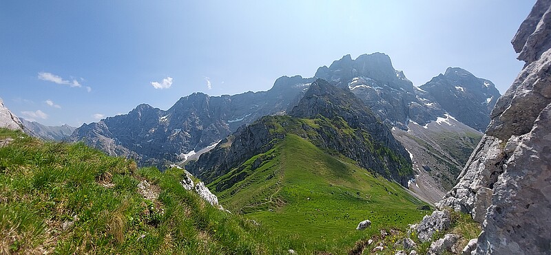 Am Scheitelpunkt der Tour ist nun Pause angesagt. Bei herrlichem Blick lässt sich Essen und Trinken jetzt so richtig genießen. Wer unbedingt auf einen Gipfel will, könnte jetzt noch zum Torkopf hinauf. Das Gelände wird dann aber deutlich alpiner, Trittsicherheit ist an den steilen Wiesenhängen in jedem Fall gefragt. Der Abstecher dauert eine Stunde länger.