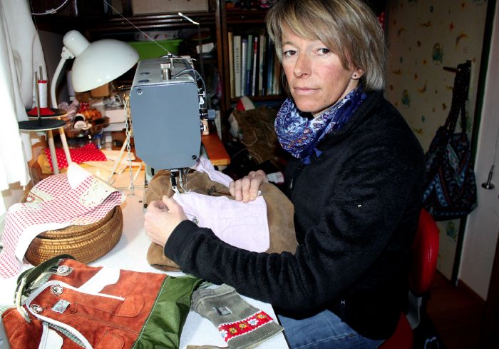 Seit 1995 lebt die gebürtige Wiesbadenerin in Geretsried. Durch die Geburt ihrer Kinder übte sie ihren eigentlichen Beruf als Innenarchitektin nie richtig aus. Dafür verdient die Künstlerin heute mit Sport ihren Unterhalt. Sie ist externe Lehrkraft am Geretsrieder Gymnasium und steht rund 50 Tage im Winter als Skilehrerin auf der Piste. Zwischendurch aber rattert die Profi-Nähmaschine, wenn Friederike Krüger wieder steppt, säumt und eine ihrer Lederhosenhandtaschen näht – übrigens der Renner der Kollektion.