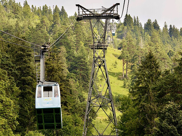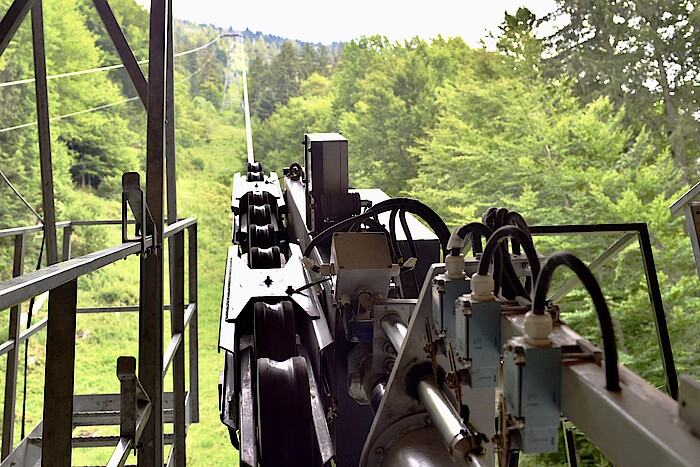 Es gibt täglich eine äußere Sichtkontrolle insbesondere der Rollen und der Schalter. In der wö-chentlichen Kontrolle werden die Laufwerke der beiden Kabinen gewartet, insbesondere die Rollen gefettet. Bei der monatlichen Wartung werden die zwei Laufwerke abgehoben und alle Rollen einzeln überprüft - dazu kommt eine Unterbodenkontrolle. Und dann gibt es zwei Inspektionen pro Jahr: Die längere Wartung Ende November dauert vier bis fünf Wochen inklusive TÜV, die kürzere im Frühjahr nur 14 Tage. Nachdem die Kabinen in dieser Zeit nicht fahren, wird diese Zeit für Fortbildungen genutzt, allerdings auch für zeitintensive Arbeiten wie das Ausforsten der Bahntrasse und die Instandhaltung der Bergwege. Diese Arbeiten seien vor allem körperlich anstrengend, aber die Bergungsübungen seien laut Findeisen die größte Herausforderung: "Jeder Kabinenbegleiter muss in der Lage sein, im Notfall die Kabine zu evakuieren; die schaukelt dann irgendwo 20 Meter über dem Boden bei Dunkelheit im kalten Novemberwind. Die Passagiere werden dann panisch" - auch wenn's nur eine Übung mit Freiwilligen sei. Dass die Mitarbeitenden solche Herausforderun-gen meisterten, sei bei jeder Neueinstellung die Messlatte, "da hatte ich bisher offenbar ein ganz gutes Näschen," sagt Findeisen stolz.