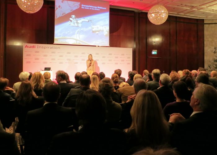 München, 17.10.2013 – „ Werden Sie Weltraum-Tourist, dann werden Sie zurückkehren mit einer anderen Sicht auf unsere Erde“, riet Professor Dr. Ulrich Walter den rund 300 geladenen Gästen. „Wenn Sie es sich leisten können – dann machen Sie das!“, sein Schlusswort nach einem knapp zweistündigen Vortrag „Grenzerfahrung Weltraum – Was bleibt, ist das Denken“, im Rahmen der Reihe „Audi Inspiration“ im Charles Hotel in München. Ulrich Walter ist einer von bisher nur zehn Deutschen Astronauten, die im Weltall waren. Er gehörte 1993 zur 55. Space-Shuttle-Mission mit der Raumfähre Columbia.