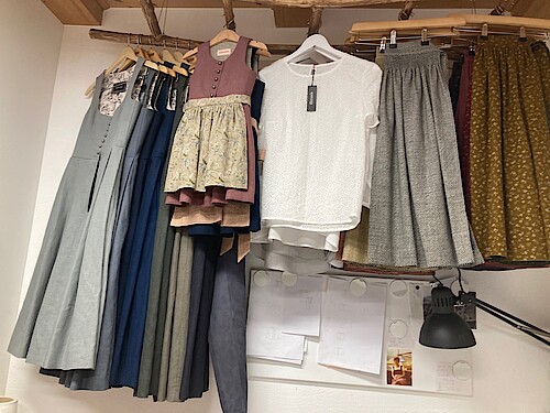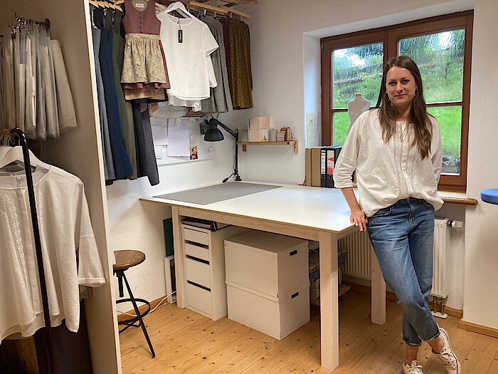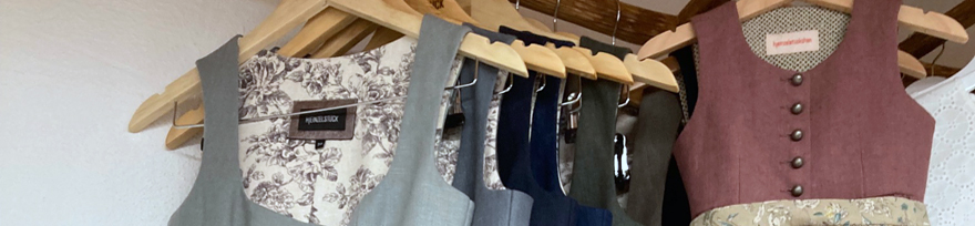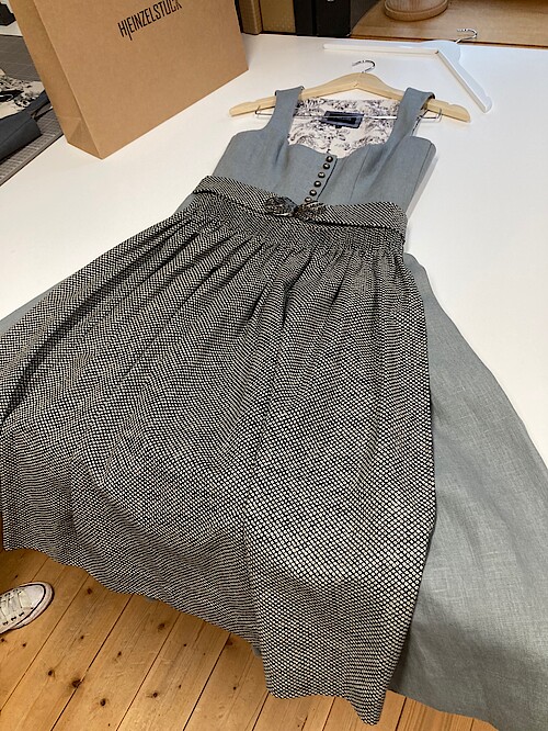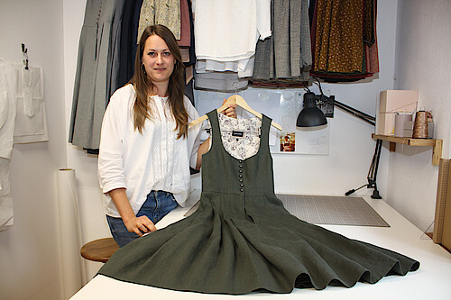 Leyendecker liebt die Tradition. Im kleinen Design-Atelier, im Rückgebäude des Münsinger Landhauses, entwirft sie heute Dirndl, Trachtenblusen und Accessoire in kleinen Auflagen.Aus feinem Leinen, in sanften Farben, ohne Pomp und Chi-Chi, dafür von schlichter Schönheit. Sie verwendet teils alte japanische Druckmotive, die überraschend gut zum Trachten-Look passen. Julia Leyendecker hat kurz vor dem Lockdown ihre erste Collection unter dem Label „Heinzelstück“ entworfen und produzieren lassen. Die Auftragslage ist nun eingebrochen. Aber die junge Modedesignerin verzagt nicht: Es wird ganz sicher wieder Feste und Feiern geben.“