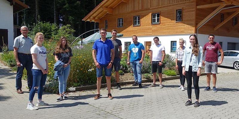 Marinus Eichner, selbst Studierender des zweiten Semesters an der Landwirtschaftsschule Holzkirchen, führte die Gymnasiasten im Rahmen eines Rundgangs über seinen elterlichen Betrieb und gab einen Einblick in die landwirtschaftliche Produktion. Nach dem Rundgang stellten sich die Studierenden der Landwirtschaftsschule weiteren Fragen der Gymnasiasten. Thematisiert wurde zum einen die noch immer andauernde Corona-Krise. Die Landwirte und Molkereien haben hier unter anderem mit einem geringe-ren Milchabsatz, der sich auf einen geringeren Milchpreis niederschlägt, zu kämpfen, da beispielsweise die Gastronomie und Hotellerie enorme Einbußen haben. Zum anderen be-klagten die Studierenden die Problematik im Umgang mit dem Lebensmitteleinzelhandel (LEH). Man sei den Supermärkten förmlich ausgeliefert und müsse die Preise hinnehmen, die die großen Supermarktketten bestimmen. „Die anstrengende Arbeit wird von uns gerne gemacht, doch man bekommt regelmäßig eine ‚Watschn‘ vom Handel“, so Sabine Buchberger, Studierende des zweiten Semesters. Rolf Oehler appelliert dabei direkt an die Verbraucher. Durch den Kauf von mehr regionalen Produkten könne jeder Einzelne dafür Sorge tragen die Landwirtschaft in der Heimat zu unterstützen.