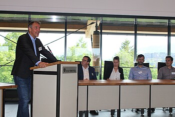 „Die Ansiedlung neuer Unternehmen und der Hochschule München wird Bad Tölz zu einem Zentrum für Technologie und Wissenschaft machen", sagte Dr. Ingo Mehner, der Bürgermeister von Bad Tölz. Zusammen mit dem WFO-Vorsitzenden Andreas Roß begrüßte er rund 30 interessierte Gäste aus Wirtschaft und Politik.