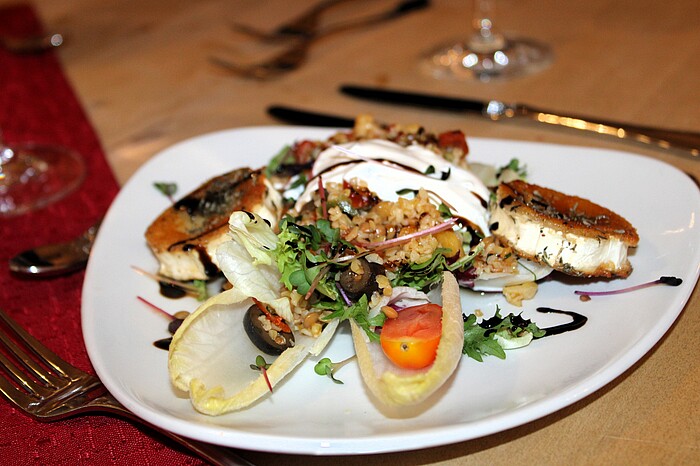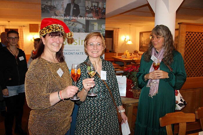 Schon vor dem Ankommen der ersten Gäste hatte Gastgeberin und Initiatorin Beate Mader die festlich gedeckten Tische dekoriert und als Geschenk ihre geschmackvoll eingepackten Wertekarten an jedem Platz ausgelegt. So ergab sich nach dem Stehempfang mit Aperol, Glühwein und alkoholfreiem Punsch schnell Gesprächstoff. Es trafen beispielsweise „Weisheit" auf „Rücksichtnahme" und „Stabilität" auf „Geduld". Nebenbei konnten Unternehmer und Freiberufler im lockeren Gespräch ihre Tatigkeitsfelder vorstellen und im besten Fall sogar den Grundstein für eine künftige Zusammenarbeit legen. Zwischendurch mundeten leckeren Vorspeisen wie die Kürbis-Maronensuppe mit Karottenstroh oder der Ziegenkäse vom Grill mit Thymian und Honig auf Bulgur und Sourcream.