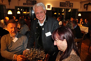 Für hochprozentige Geschmackserlebnisse sorgte Stefan Lau. Der Otterfinger Diplom-Kaufmann servierte die von ihm vertriebene Aprikosen- und Zwetschgenedelbrände. Zudem gab er Anleitungen, wie sich der Genuss dank Nase und Mundhöhle steigern lässt. „Ein guter Brand darf nicht brennen", stellte er klar. Nur schade, dass einigen Autofahrern diese hochwertigen Spirituosen verwehrt blieben. Dank der Bildung von Fahrgemeinschaften kam jeder Festgast sicher nachhause und freut sich schon jetzt auf das nächste Networking-Dinner in einem Jahr.