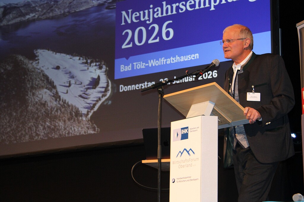 Bad Tölz, 24. Januar 2026 – Rund 350 Gäste aus Politik, Wirtschaft und Kommunen folgten am Donnerstagabend der Einladung des Wirtschaftsforums Oberland (WFO), der IHK sowie der Handwerkskammer für München und Oberbayern ins Tölzer Kurhaus. Im Mittelpunkt des diesjährigen Neujahrsempfangs stand das Thema Künstliche Intelligenz (KI) – praxisnah, verständlich und mit Blick auf den Mittelstand.