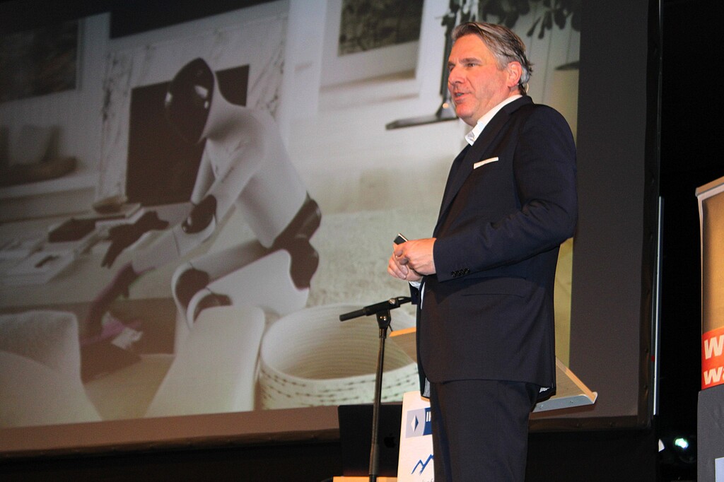 Anschließend erläuterte Professor Dr. Christian Stummeyer die Möglichkeiten generativer Künstlicher Intelligenz. Der 53-jährige Unternehmer berät Großunternehmen und Mittelständler zu Digitalstrategie, E-Commerce, KI und digitaler Transformation. Zudem ist er seit zehn Jahren Inhaber der Professur „Wirtschaftsinformatik und Digital Commerce“ an der Technischen Hochschule Ingolstadt sowie wissenschaftlicher Leiter des Netzwerks AININ („Artificial Intelligence Network Ingolstadt“).