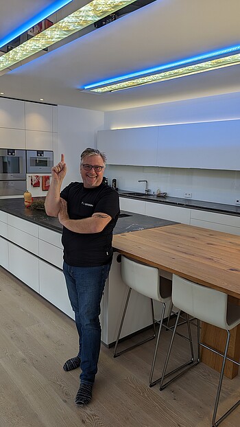 "Bei uns steht nicht die Lampe, sondern vielmehr das Licht im Fokus", so Geschäftsführer Günter Klügl. Licht sei wie ein Scharnier zwischen dem Raum, der Architektur und den Menschen, erklärt der Lichtdesigner. Es gehe darum ein integratives Gesamtbild entstehen zu lassen – weg vom bloßen Design hin zur ganzheitlichen Integration mit dem Umfeld. Eines dieser prämierten Expemlare hängt im Kunstturm am Schwankl-Eck und beleuchtet in wählbaren Farben und indirektem Licht optimal den Galerie-Raum. "Licht ist für mich einfach mehr als eine bloße Beleuchtung und diese Philosophie hat ganz offensichtlich gefruchtet“, freut sich Günter Klügl.