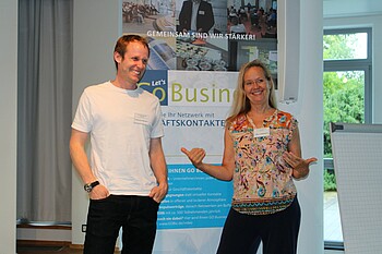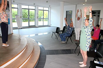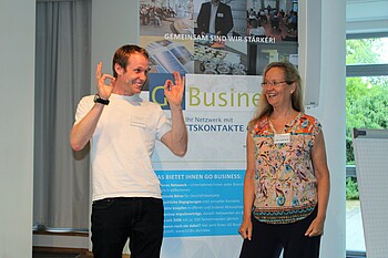 „Glück tritt gern ein in ein Haus, wo gute Laune herrscht", zitierte Lachtrainerin Ute Liebhard ein altes japanisches Sprichwort. Dabei sei es dem Körper zunächst völlig egal, ob es einen triftigen Grund für das Lachen gibt. Schon ein freundlicher Blick in den Badezimmerspiegel und ein paar aufmunternde Handbewegungen können nach dem Aufstehen für einen Energieschub sorgen, der sich positiv auf spätere Begegnungen mit anderen Menschen auswirkt. „Lachyoga bietet die Möglichkeit, sich selbst ein Stück gelassener durchs Leben zu bewegen, nicht alles immer so tierisch ernst zu nehmen und einen leichteren Weg zu gehen", erklärte Liebhard. Seit 17 Jahren leitet sie eine Lachschule in Holzkirchen, hält Vorträge und Seminare in Firmen und bietet Workshops an. Die Teilnehmer des Go-Business-Treffens forderte Liebhard zu Atem- und Streckübungen auf. Das Ergebnis war verblüffend: Fast jeder fühlte sich danach beschwingter und ausgeglichener als zuvor. Der vom Geretsrieder Caterer Schmid-Bäck' gelieferte Imbiss wertete das anschließende Netzwerken zusätzlich auf.
