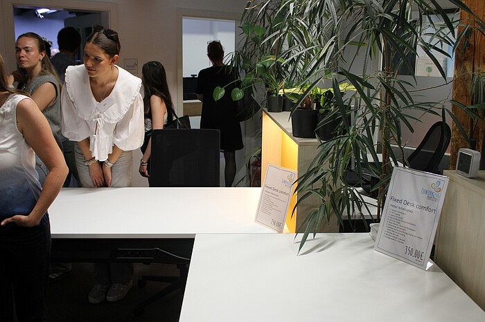 „Das ist Arbeit mit Urlaubsfeeling", versprach Gastgeberin Beate Mader. Die Geschäftsführerin von „CoWorking Bad Tölz vision hoch drei" führte die Exkursionsteilnehmer durch die Räume und verwöhnte sie dort mit einem vegetarischen Imbiss, Getränken und Gastgeschenken. Seit 2022 stehen selbstständigen Unternehmern und Freiberuflern an der Gaißacher Straße 8