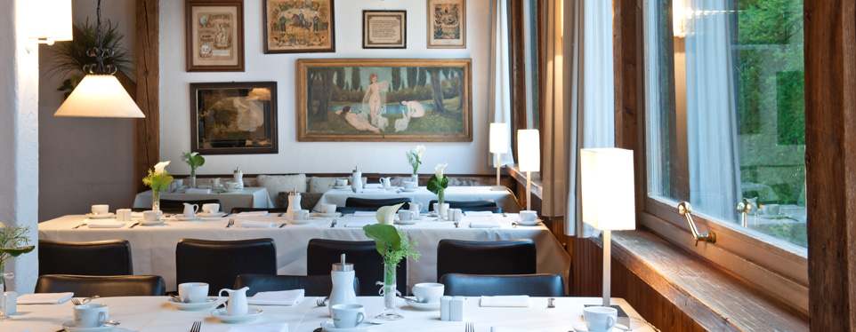 Das Marina-Restaurant bietet alle kulinarischen Spezialitäten, von traditionell, über rustikal bis vegetarisch. „Was sich die Seele eben wünscht“, sagt Bärenklau. Dazu werden ausschließlich frische Zutaten vom hoteleigenen Hofgut, wie Fleisch, Heumilch, Gemüse verarbeitet. Frisch erlegtes Wild kommt aus dem hoteleigenen Forst Adelsried bei Bernried und frische Renke aus dem Starnberger See oder der Gast kann sich den Fisch aus dem hoteleigenen Bassin auswählen.