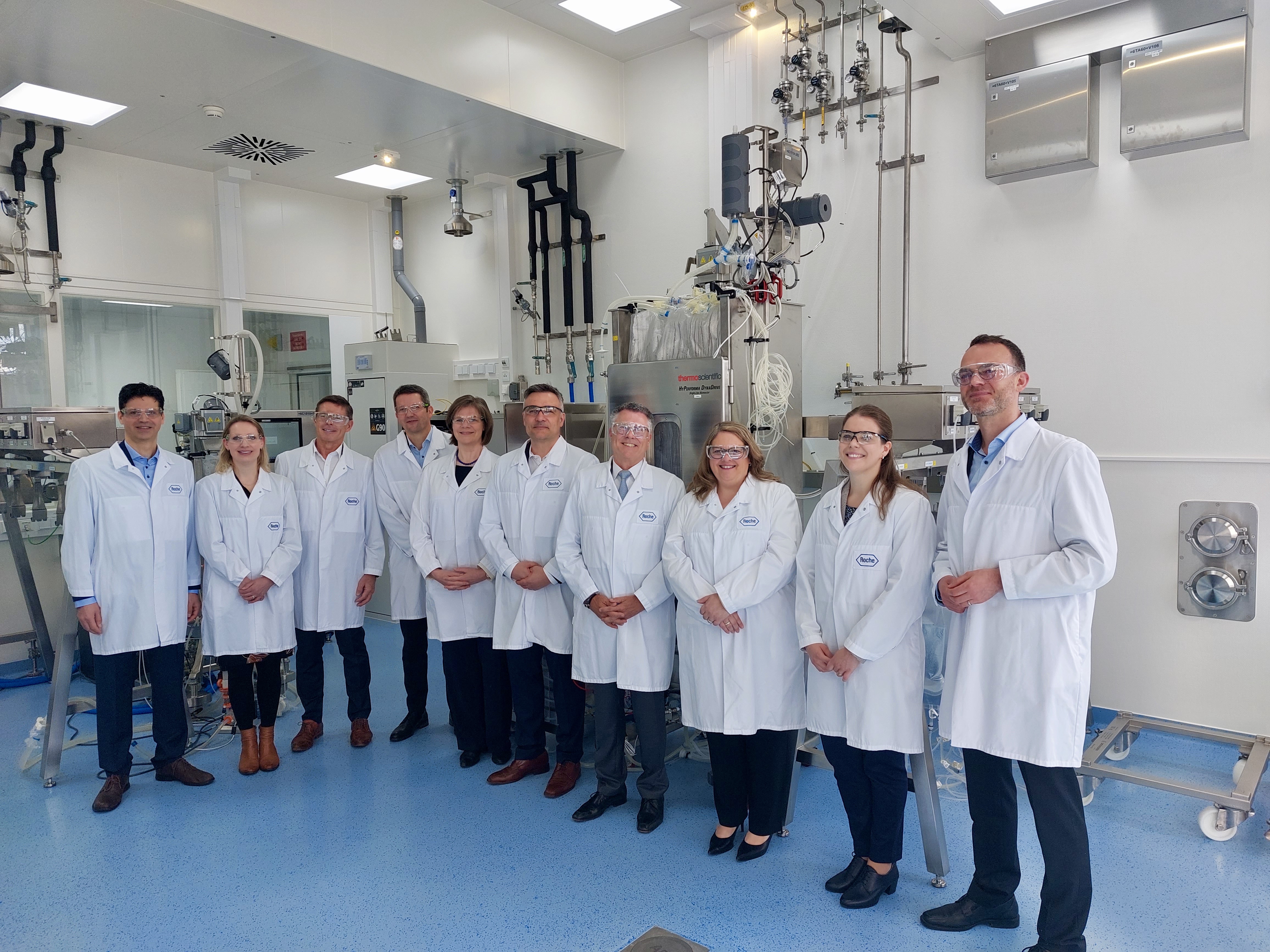 In das Gentherapie-Zentrum hat Roche nach eigenen Angaben um die 90 Millionen Euro investiert. Die Planungen dafür haben im Jahr 2021 begonnen. „This is a really remarkable (bemerkenswerter) moment“, sagte Teresa Graham, die das globale Pharma-Geschäft von Roche leitet. Sie hoffe, dass die Einrichtung ein weiteres Kronjuwel der Unternehmenswelt werde. Bevor der Festakt zur Einweihung mit zahlreichen Gästen – auch aus der Politik – begann, hatten die Roche-Verantwortlichen am Standort Graham sowie weitere Wissenschaftler und Forscher durch das neue Zentrum für Gentherapie geführt.