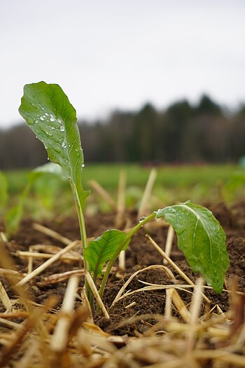 Das Projekt in Degerndorf ist bio-zertifiziert. Nicht nur die Ernte steht im Fokus, auch der eigene Aufbau von fruchtbarem Humus ist ein wichtiger Aspekt. Dafür setzt Gärtner Daniel Kreissl auf die sogenannte Gründüngung: Pflanzen wie Ackerbohnen, Roggen oder Wicke wachsen zunächst auf dem Feld, bevor sie zerkleinert und in den Boden eingearbeitet werden. „Sie nehmen Nährstoffe auf, binden sogar Stickstoff aus der Luft und geben ihn später wieder an den Boden zurück.“ So entsteht eine natürliche Fruchtbarkeit ohne die Zugabe von künstlichem Dünger. Rund um den Acker wurden zudem Hecken und Apfelbäume gepflanzt, um Lebensräume für Insekten zu schaffen. Ein langes Holzgestell steht mitten am Feld. Es ist ein Fluglandeplatz für Milane und Bussarde. Sie jagen die Feldmäuse.