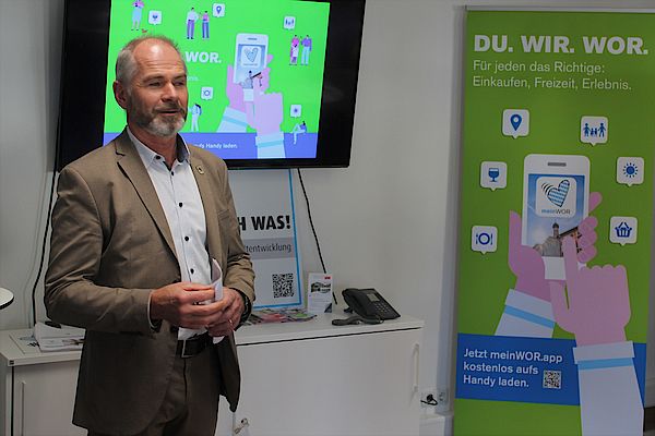 Victoria Fletcher und Klaus Härpfer von „City Points“ erklärten daraufhin das Erscheinungsbild und die Funktionsweise der „meinWOR.app“. So enthält der Basiseintrag des eingetragenen Unternehmens neben dem Namen auch den Standort mit Fotos, Öffnungszeiten und besonderen Angeboten. Am unteren Bildschirmrand führen Links zu den Social-Media-Auftritten der teilnehmenden Geschäfte. „Viele Gewerbetreibende haben auch schon ein 360-Grad-Bild anfertigen lassen, damit man sich auf dem Bildschirm in ihrem Laden umschauen kann“, zeigte sich Härpfer beeindruckt. Während Unternehmen für ihren Auftritt eine Gebühr entrichten müssen, können sich gemeinnützige Vereine kostenlos präsentieren. „In der App finden die Nutzer zudem städtische und soziale Einrichtungen, Schulen und KiTas sowie Parkplätze, Geldautomaten, Sportstätten und Spielplätze“, ergänzte Fletcher. Sie hat sich vorgenommen, innerhalb des ersten Jahres die Marke von 100 aktiven Teilnehmern zu erreichen. Gemeinsam mit ihren Kollegen warb die City-Points-Mitarbeiterin bereits am Wolfratshauser Kirchweihmarkt für die App und erfuhr dabei viel positive Resonanz. „Wir wollen das WOR-Gefühl wecken!“, bekräftigte Designer Jens Fritzsche.
