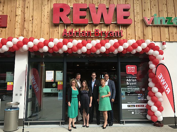 Icking, 5.8.2019 – Zur großen Freude zahlreicher Bürger aus Icking und Umgebung hat nach vielen Jahren der Entwicklung vor wenigen Tagen der neue Rewe in Icking eröffnet. Bürgermeisterin Margit Menrad fasste das mit einem kurzen geschichtlichen Abriss schlussendlich zusammen mit den Worten: „Was lange währt, wird endlich gut!“ Ein junger Bursche meinte am Rande der Feier zu seinem Nachbarn augenzwinkernd: „Super! Jetzt haben wir endlich einen Markt.“ Er freute sich stellvertretend für die vielen Schüler, die mit der S-Bahn nach Icking kommen, dass man jetzt wieder „dies und das“ auf dem Schulweg besorgen könne. Außerdem gefalle ihm die Bistro-Ecke vom Bäcker Ihle mit dem dazu gehörigen Balkon und dem „1a-Panorama-Blick“.