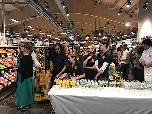 Rewe-Chef Adrian Bryant aus Bad Tölz hat bereits mit der Eröffnungsfeier gezeigt, dass er trotz seiner jungen Jahre (29) einiges an Erfahrung mitbringt und bei seiner Mannschaft auf Team-Geist setzt. Als „echtes Rewe-Kind“ freue er sich nach seiner Ausbildung und zuletzt vier Jahren als Marktleiter in Neubiberg vor allem jetzt wieder in seinem Heimatlandkreis angekommen zu sein: „Natürlich steht das Thema Nachhaltigkeit ganz weit oben auf der Agenda. Wir haben das auch bei der Auswahl der Lieferanten berücksichtigt.“ Komplett plastikfrei lasse sich ein so großer Supermarkt einfach nicht realisieren. Doch er verspricht: „Wir werden versuchen, es immer noch ein bisschen besser zu machen, um die ökologischen Gesichtspunkte zu berücksichtigen.“ Bleibt zu hoffen, dass die Kunden das dann auch zu schätzen wissen und entsprechend einkaufen.