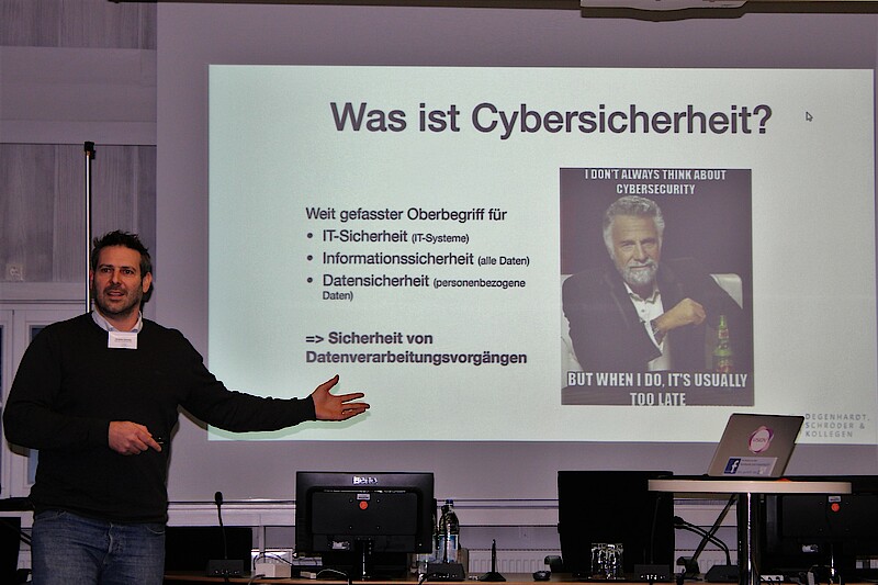 „Schadprogramme führen schädliche Operationen aus oder befähigen andere dazu", erklärte Christian Schröder. Der selbständige IT-Berater wird als externer Datenschutzbeauftragter und Informationssicherheitsbeauftragter für Unternehmen und öffentliche Stellen bestellt, führt unabhängige Datenschutzaudits durch und berät bei der Einführung von Informations- und Datenschutzmanagementsystemen. Damit Sicherheitslücken sowie die Gutgläubigkeit und Ahnungslosigkeit von Nutzern nicht von Kriminellen ausgenutzt werden, empfiehlt derGeschäftsführer der Degenhardt, Schröder & Kollegen GmbH eine umfassende Cyberversicherung. Bei der Abwehr gegen Schadprogramme helfen regelmäßige Sicherheitsupdates, Antiviren-Software, begrenzte Berechtigungen, segmentierte Netze, starke Passwörter, Datensicherungen und die Erstellung eines Notfallplans. Dass Schadprogramme meist über E-Mail-Anhänge ins System des Betroffenen gelangen und Kriminalität sogar bei Hackern im Internet bestellt werden, sei laut Schröder längst kein Geheimnis mehr. Sein Fazit: „Man muss einfach alle Türen für Angriffe schließen!", stellte der IT-Experte klar.