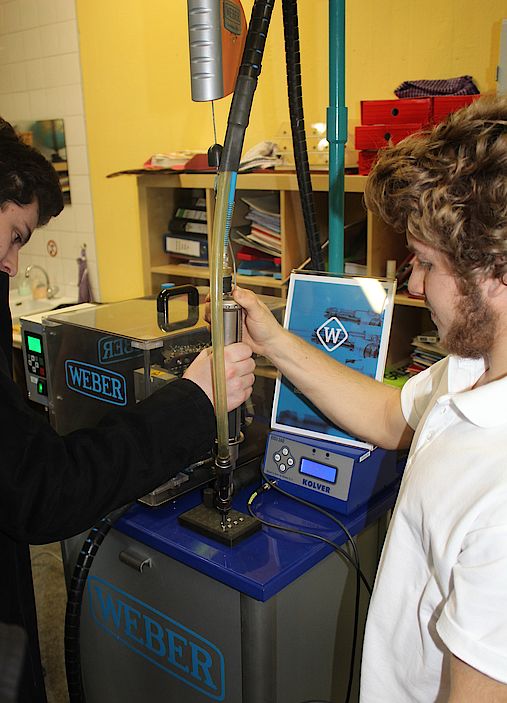 Industrie- und Zerspanungsmechaniker oder Mechatroniker: Beim Wolfratshauser Unternehmen Weber Schraubautomaten stellen Auszubildende die drei spezialisierten Berufsfelder vor. Unter Anleitung eines angehenden Industriemechanikers können sich die Schüler an einer Schraubenmaschine selbst versuchen. Doch dafür braucht es im Beruf mehr als das bloße Hineindrehen der Schrauben in ein Werkstück. Die Maschine besteht aus Steuerung, Zuführung und Spende. Zuerst gilt es die Steuerung einzurichten und festzulegen, wann und wie schnell wie viele Schrauben über die Zuführung bis zur Spende weitergeleitet werden.